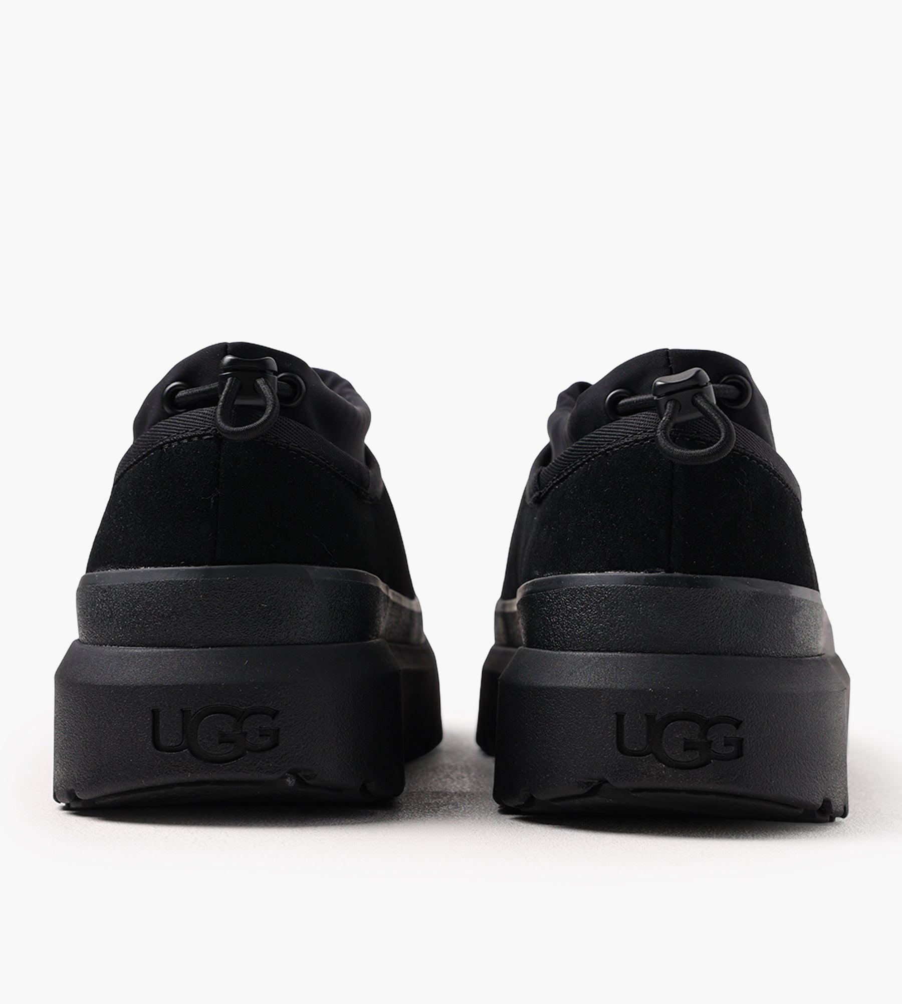 De UGG Tasman Weather Hybrid in Black/Black combineert een waterdicht suède bovenwerk met naad-afgedichte constructie en biedt daarmee bescherming tegen lichte regen en sneeuw. Een permanente foam-galosh verhoogt de duurzaamheid, terwijl de elastische veter met toggle-sluiting zorgt voor gemak en een stevige pasvorm. Binnenin houdt de 17 mm UGGplush™-voering—gemaakt van gerecyclede wol en TENCEL™ Lyocell—je warm en comfortabel, zelfs tot -20°C. De Sugarcane EVA-zool met Spider Rubber®-pods zorgt voor betrouwbare grip op natte of ijzige ondergronden.